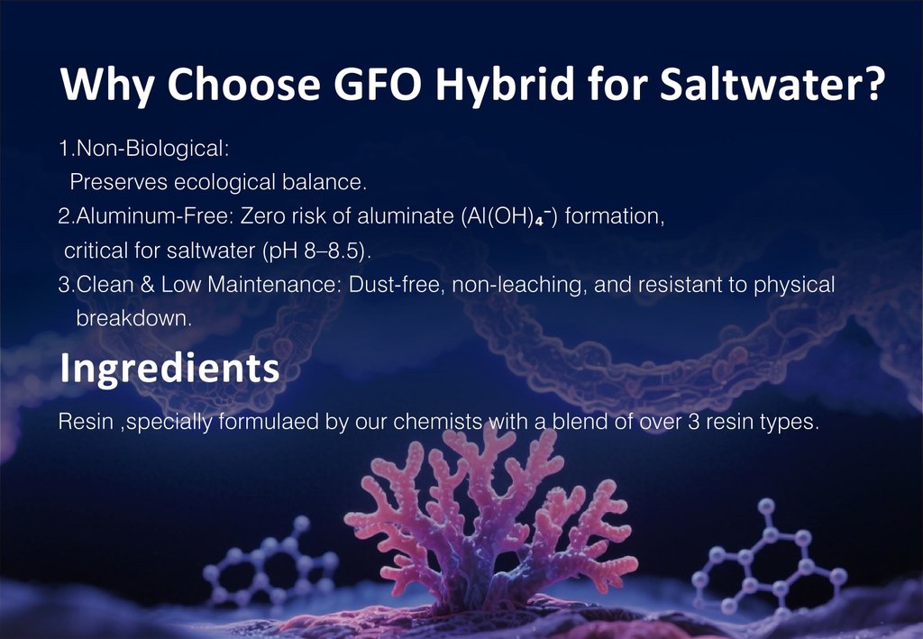 Zoox GFO Hybrid là dòng vật liệu resin hỗn hợp gồm hơn 3 loại nhựa khác nhau, được thiết kế chuyên dụng để loại bỏ phosphate (PO₄) dư thừa trong bể cá biển san hô. Sản phẩm có khả năng hấp phụ mạnh, sạch, không tạo bụi, không vỡ vụn và đặc biệt không chứa nhôm – hoàn toàn an toàn cho san hô SPS, LPS và các sinh vật nhạy cảm.