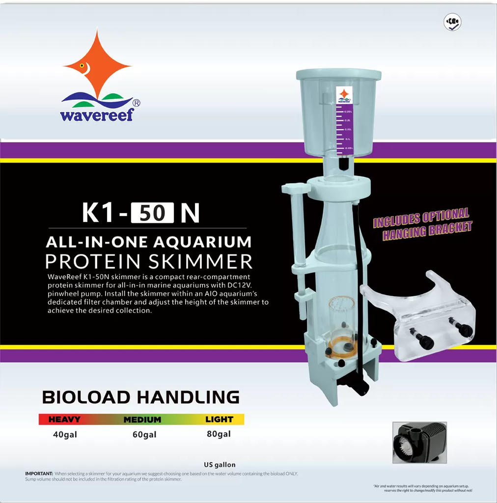 WaveReef K1-50N Protein Skimmer là máy tách bọt nano thế hệ mới được thiết kế dành riêng cho bể cá biển, bể san hô và hệ thống All-In-One (AIO) có dung tích từ 80 – 300 lít.